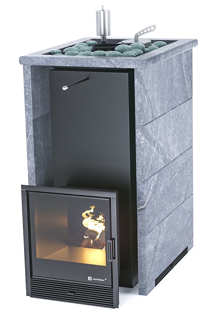 Печь для бани ИзиСтим Геленджик Талькохлорит трёхсторонний с открытым верхом