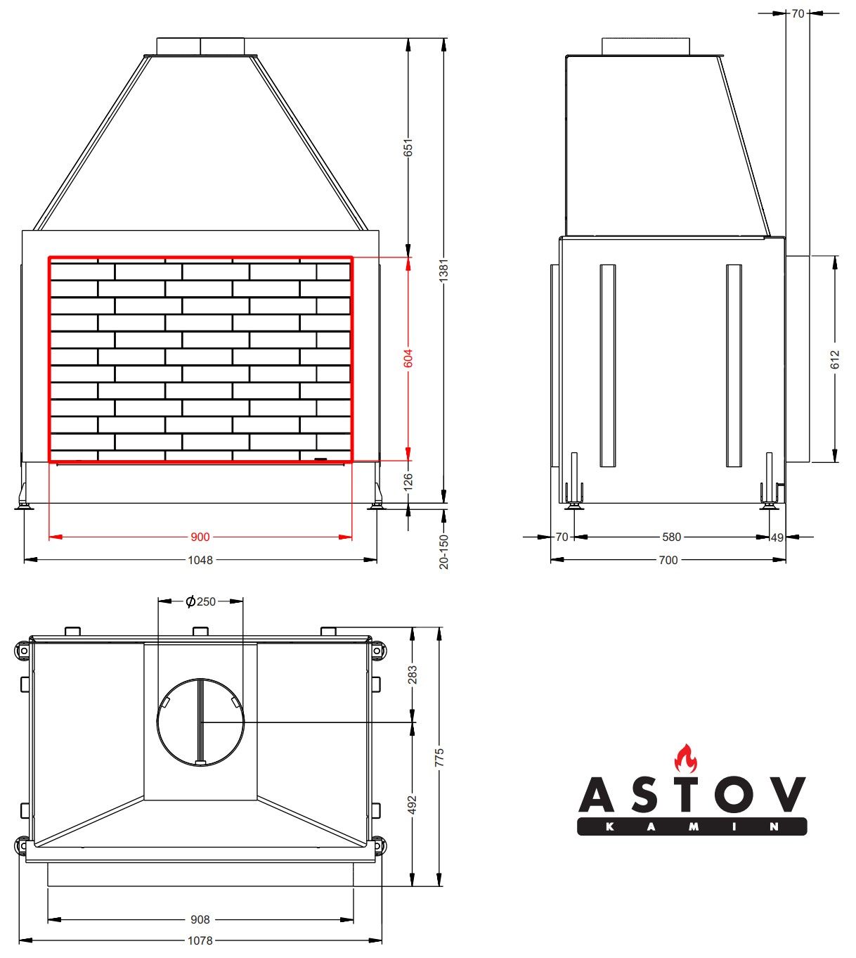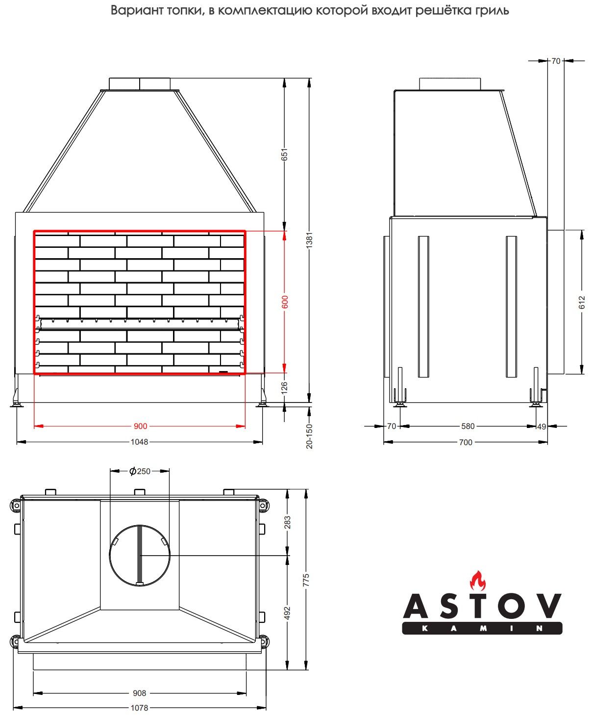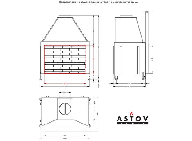 Каминная топка Astov ОПС 900 У