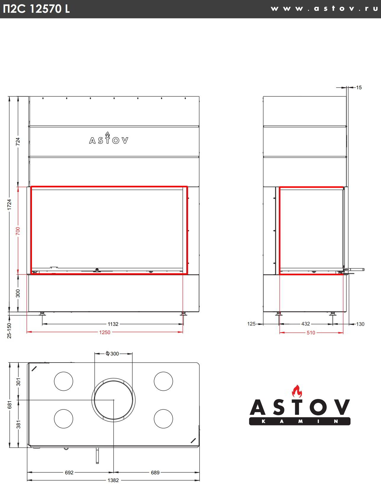 Каминная топка Astov П2С 12570 L
