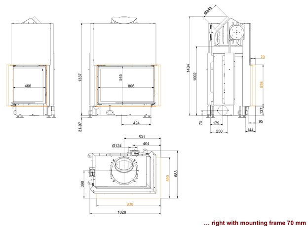 Каминная топка Brunner Eck Lift 57/82/48 Right