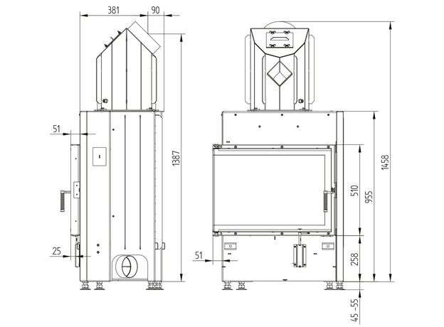 Каминная топка Hoxter ECKA 67/45/51