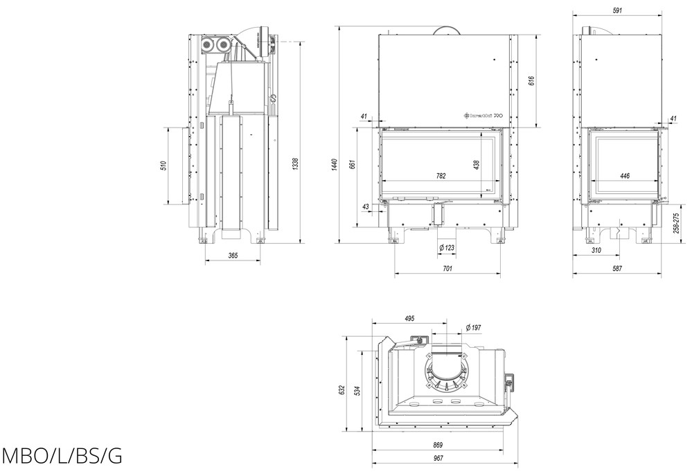 Каминная топка Kratki MBO 15 L/BS/G