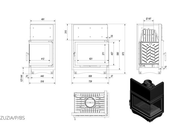 Каминная топка Kratki Zuzia 16 R/BS