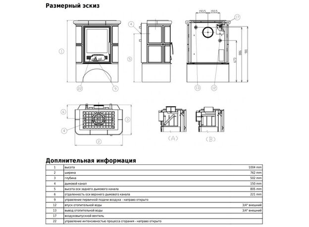 Печь-камин ABX Bavaria K с теплообменником