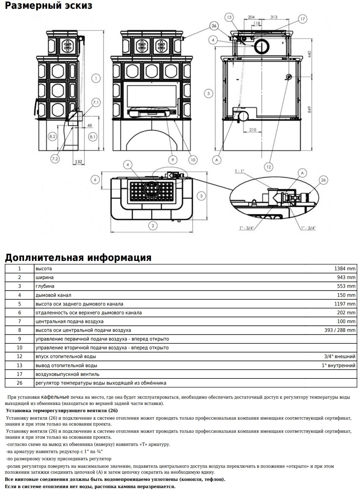Диаметр дымохода: