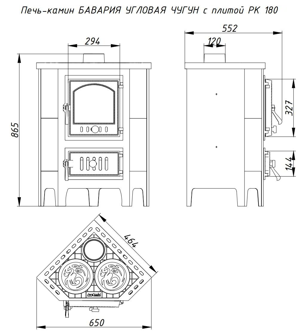 Печь-камин EcoKamin Бавария Угловая Чугун с плитой