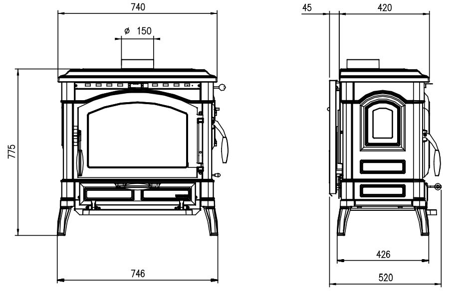 Диаметр дымохода: