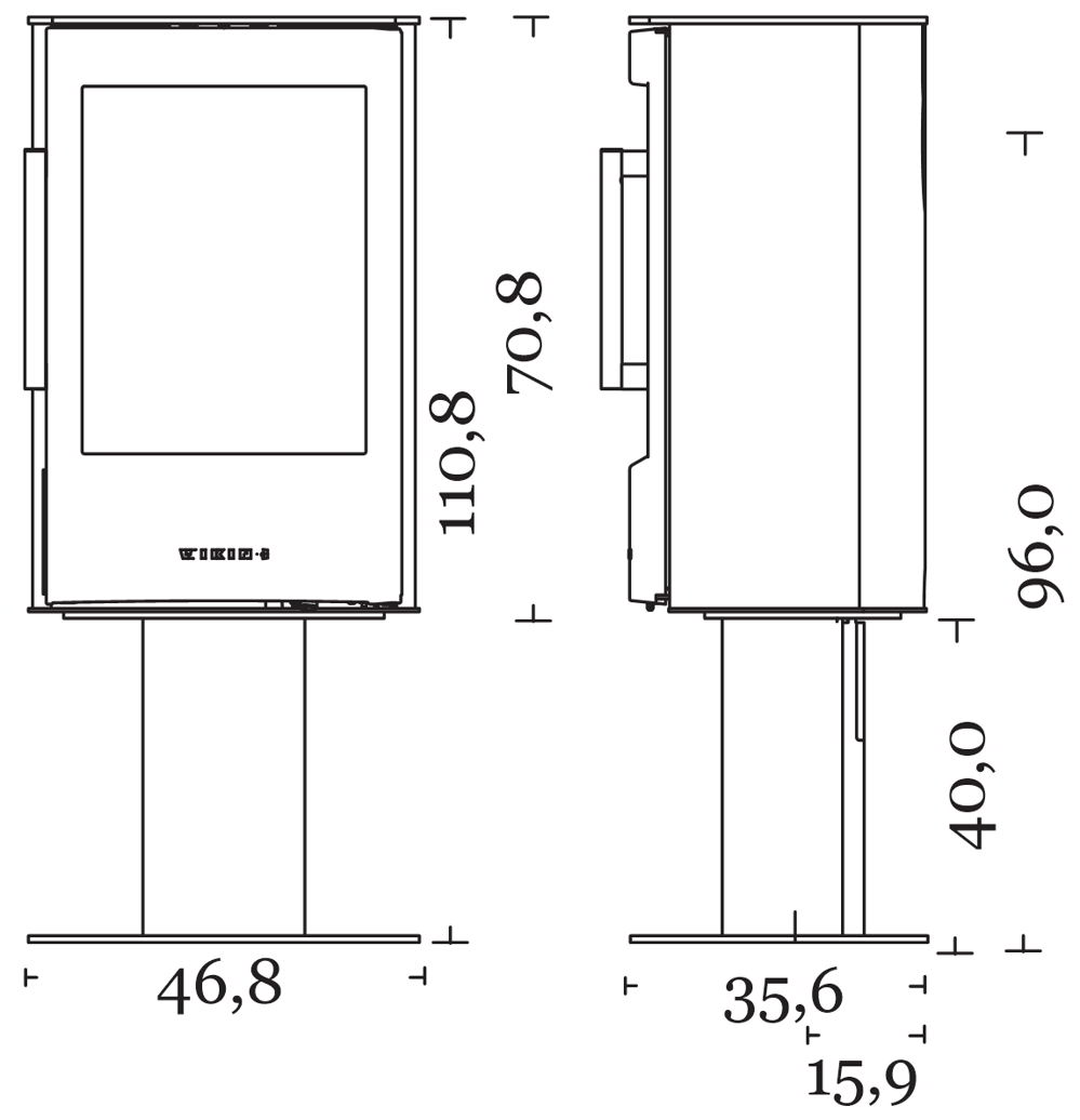 Габариты. Печь не занимает много места, не требует большого пространства для установки. При этом Wiking Miro имеет огромное остекление. Для установки печи не нужен фундамент. Её можно устанавливать на любой тип полового покрытия. В том числе на деревянные полы или на ламинат. Нижняя часть Викинг Миро не нагревается СОВСЕМ. Для защиты от возможного попадания случайных угольков на пол мы укладываем перед печью небольшой стальной или стеклянный притопочный лист.